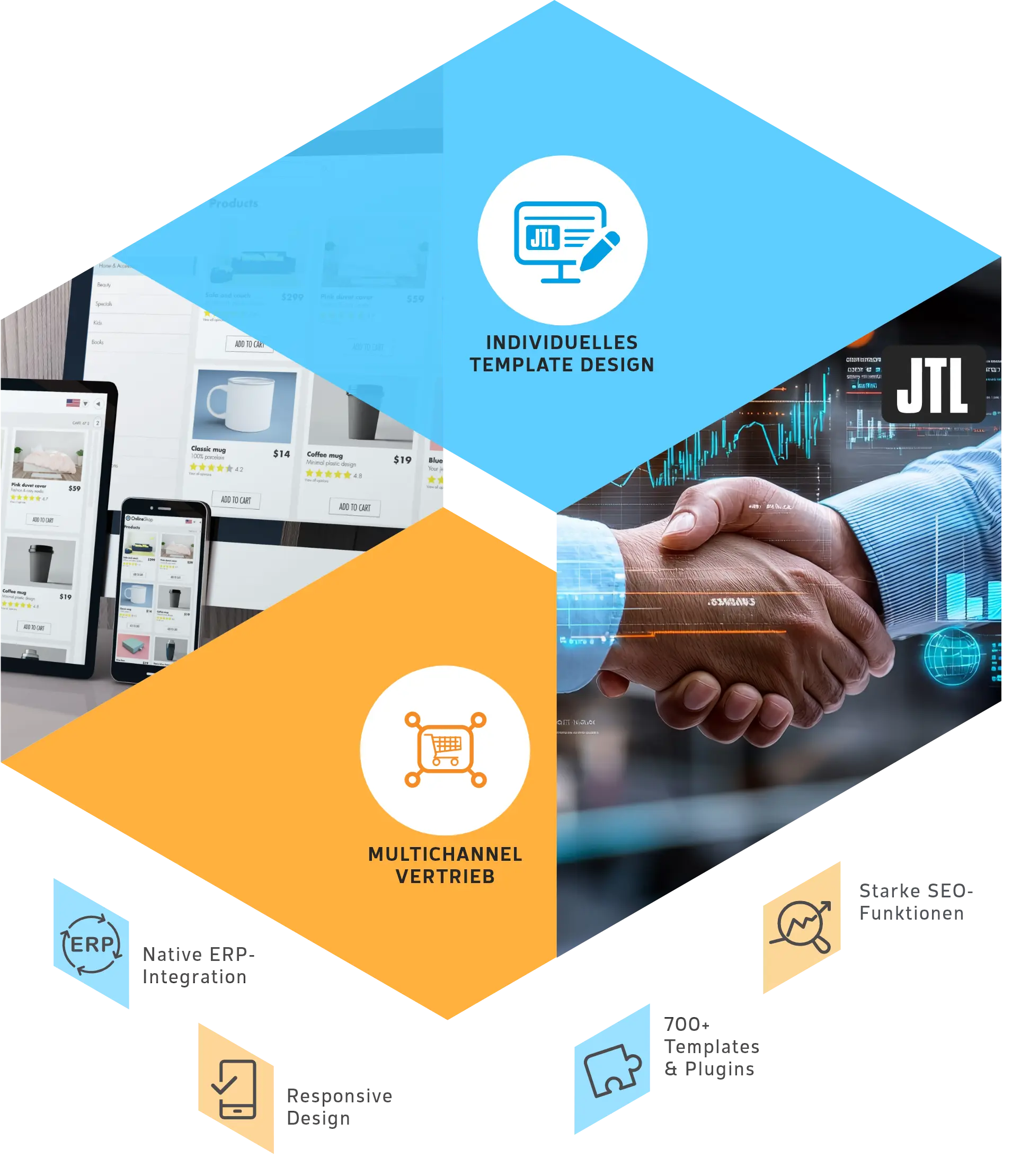 Individuelle Template-Entwicklung, die exakt auf Ihre Marke zugeschnitten ist. Conversion-optimierte JTL-Shop Startseite, Responsive Design und barrierefreie Gestaltung nach aktuellen Standards.