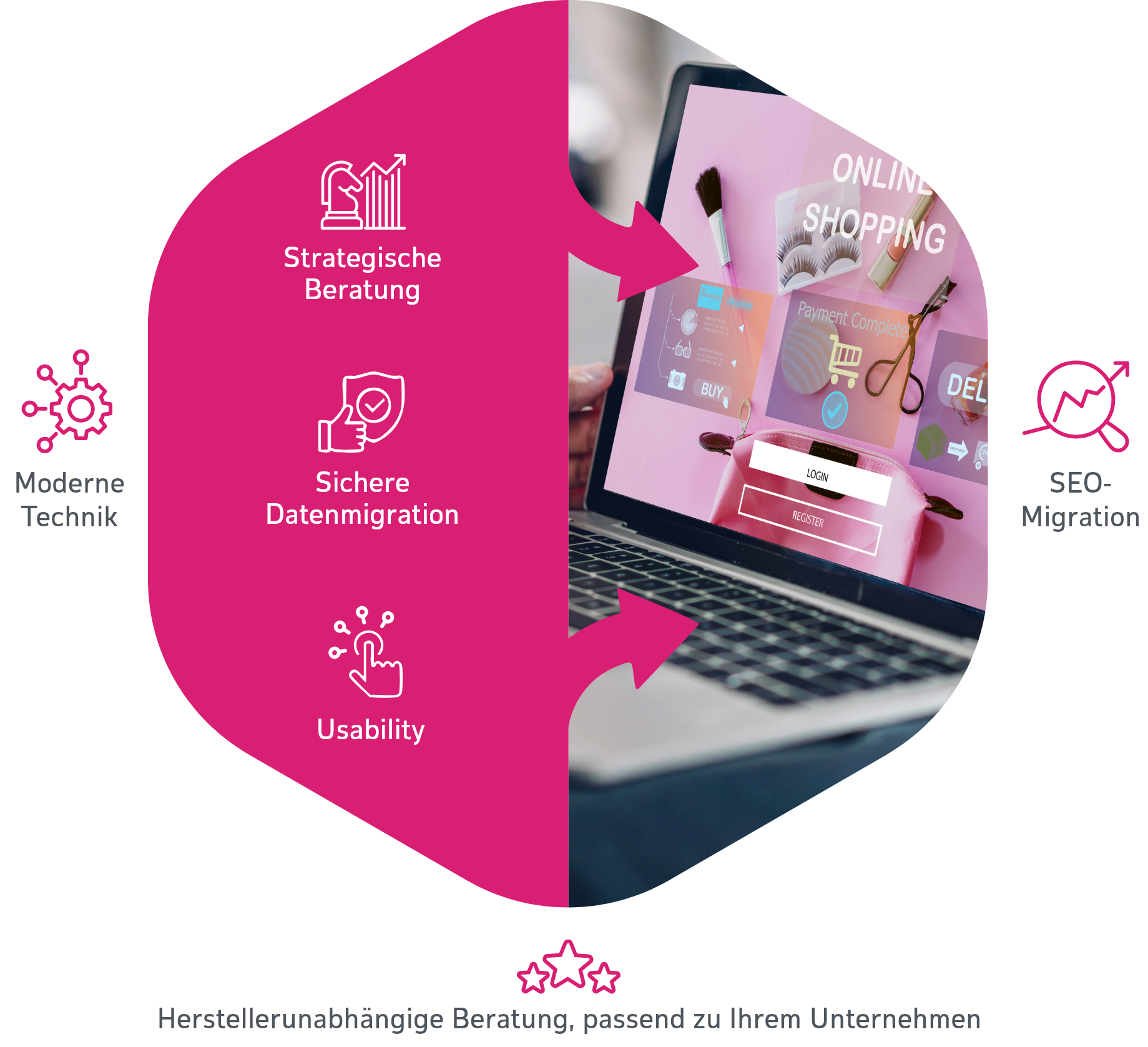 Plattformwechsel zur Kostensenkung und Vereinfachung des Betriebs. Inklusive ERP-Anbindung, Multi-Channel-Setup und internationalem Rollout.